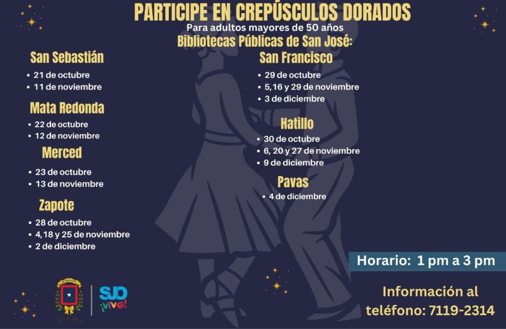La Municipalidad de San José invita a las personas mayores de 50 años a participar en el programa “Crepúsculos Dorados”, una iniciativa que busca incentivar el movimiento, los hábitos saludables y la participación comunitaria mediante el baile y la recreación.
