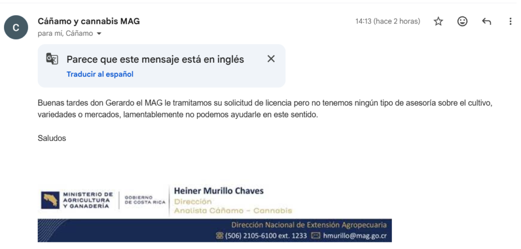 Un ciudadano escribió al ministerio solicitando asesoría tras escuchar las declaraciones de la diputada. La respuesta fue clara: trámites sí, acompañamiento no. No existe protocolo para reconvertir agricultores de arroz en productores de cannabis medicinal. Ni infraestructura pública, ni paquetes tecnológicos, ni especialistas asignados a esa ruta. Nada.