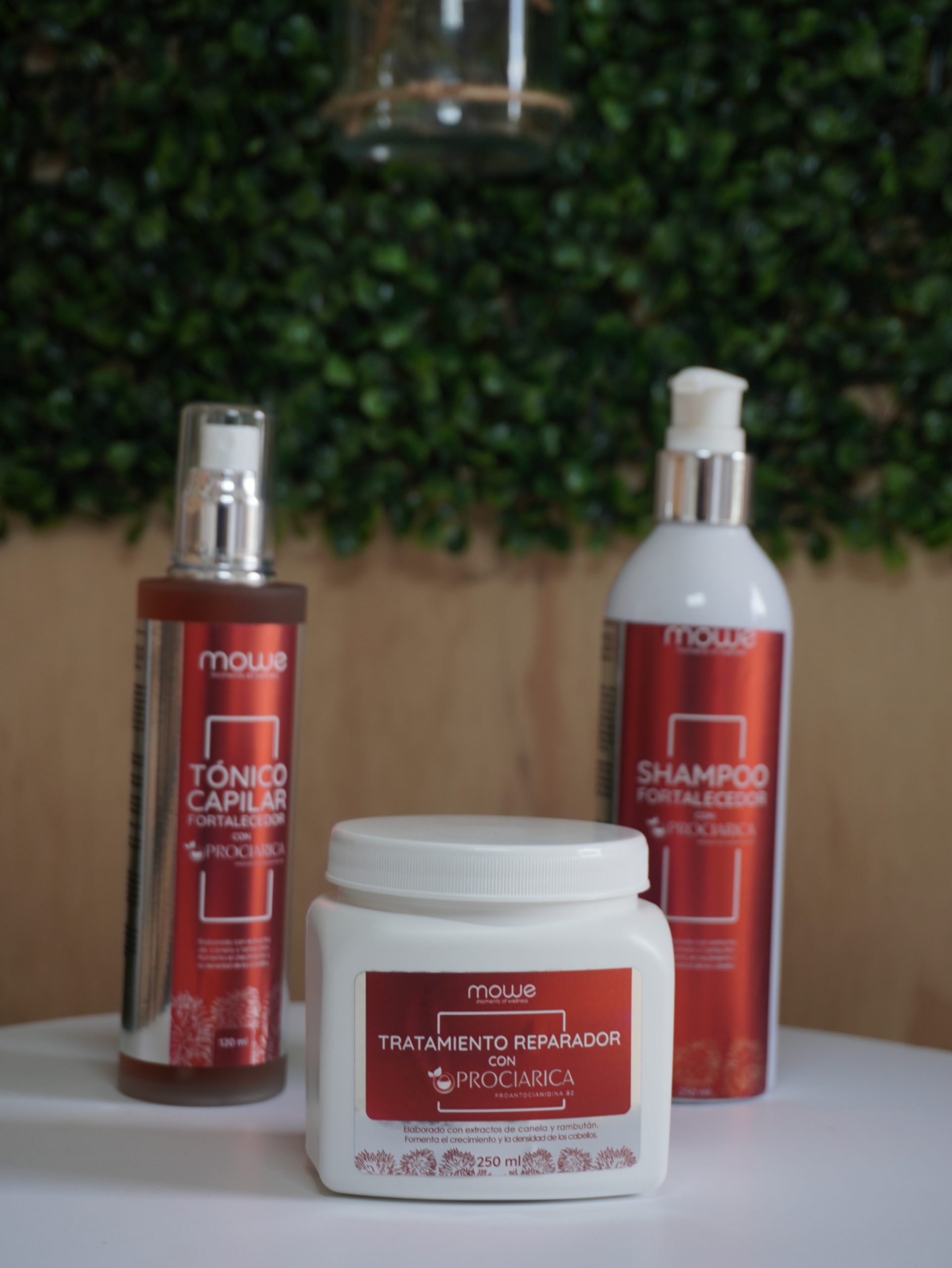 Este avance científico se transformó en la línea Mowe – Moments of Wellness, compuesta por champú, tónico y tratamiento capilar elaborados a partir del extracto Prociarica. Los productos ofrecen fortalecimiento del cabello, reducción de la caída y una alternativa natural respaldada por evidencia técnica.