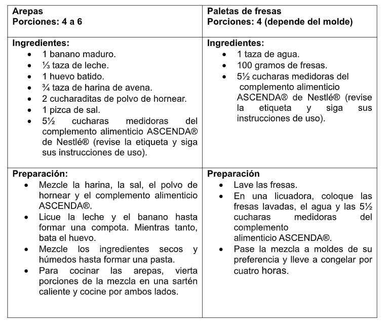 En línea con su compromiso de mejorar la calidad de vida a través de la alimentación Nestlé poner a disposición en el mercado nacional, ASCENDA®, un complemento nutricional diseñado para abordar las necesidades específicas de los niños a partir de los dos años, en especial aquellos que presentan crecimiento por debajo de lo esperado, ingesta dietética insuficiente, diagnóstico de desnutrición o disminución del apetito debido a enfermedades.