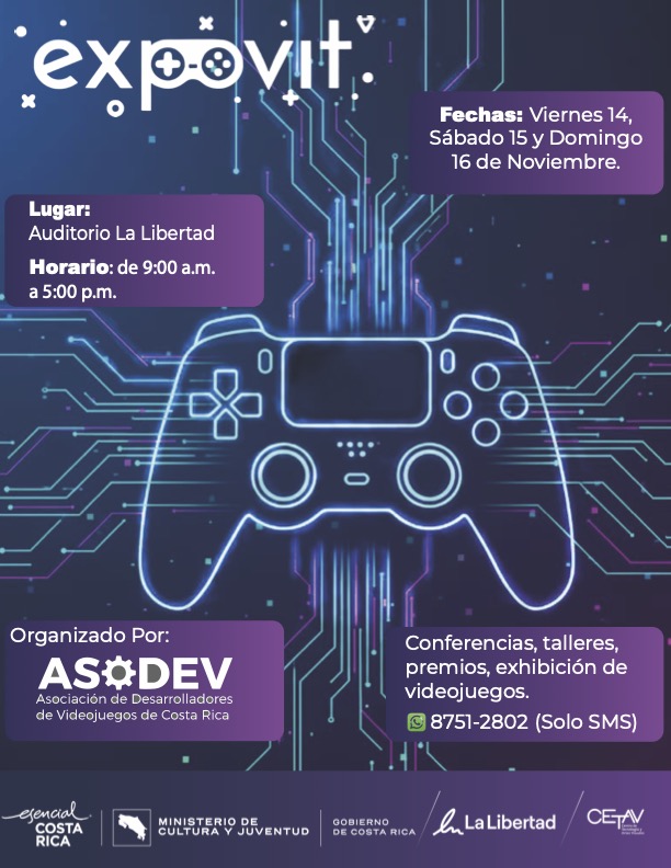 Del 14 al 16 de noviembre, el Auditorio del Parque La Libertad se convertirá en el epicentro del talento costarricense en el ámbito de los videojuegos, con una nueva edición de EXPOVIT.
