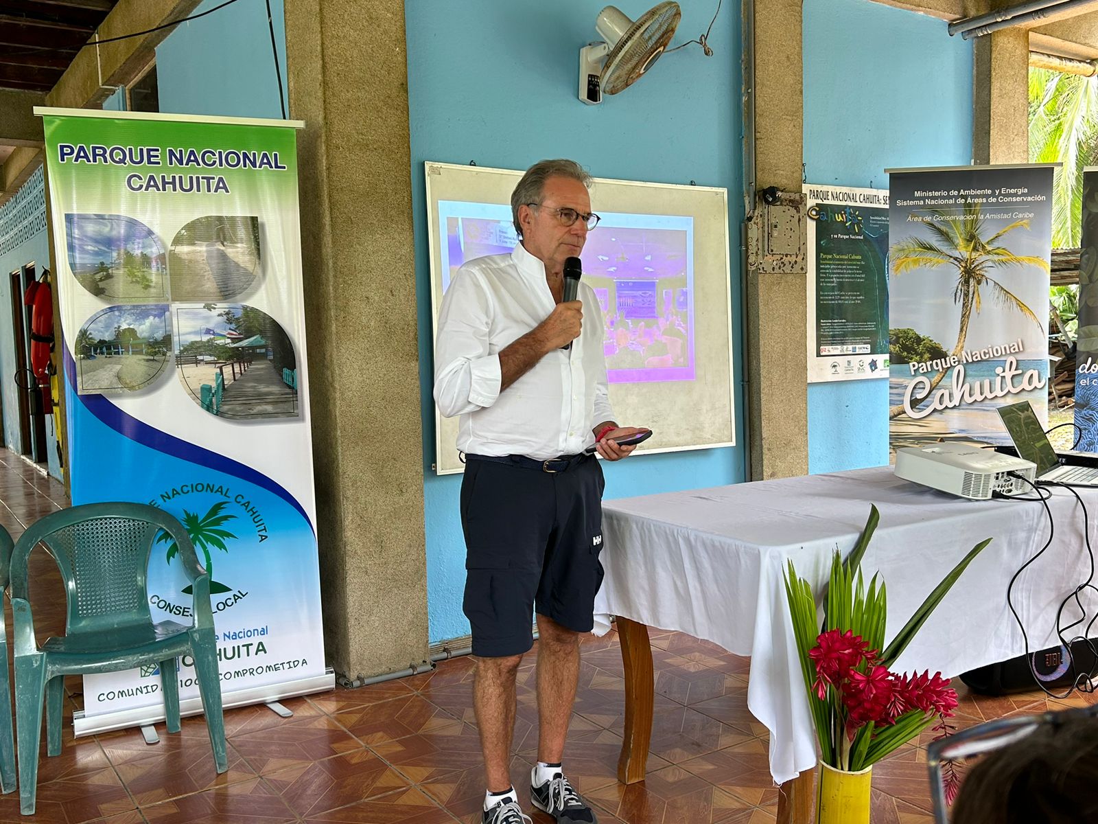 Renaud Muselier en visita oficial a Cahuita para el lanzamiento del proyecto OCEAMP.