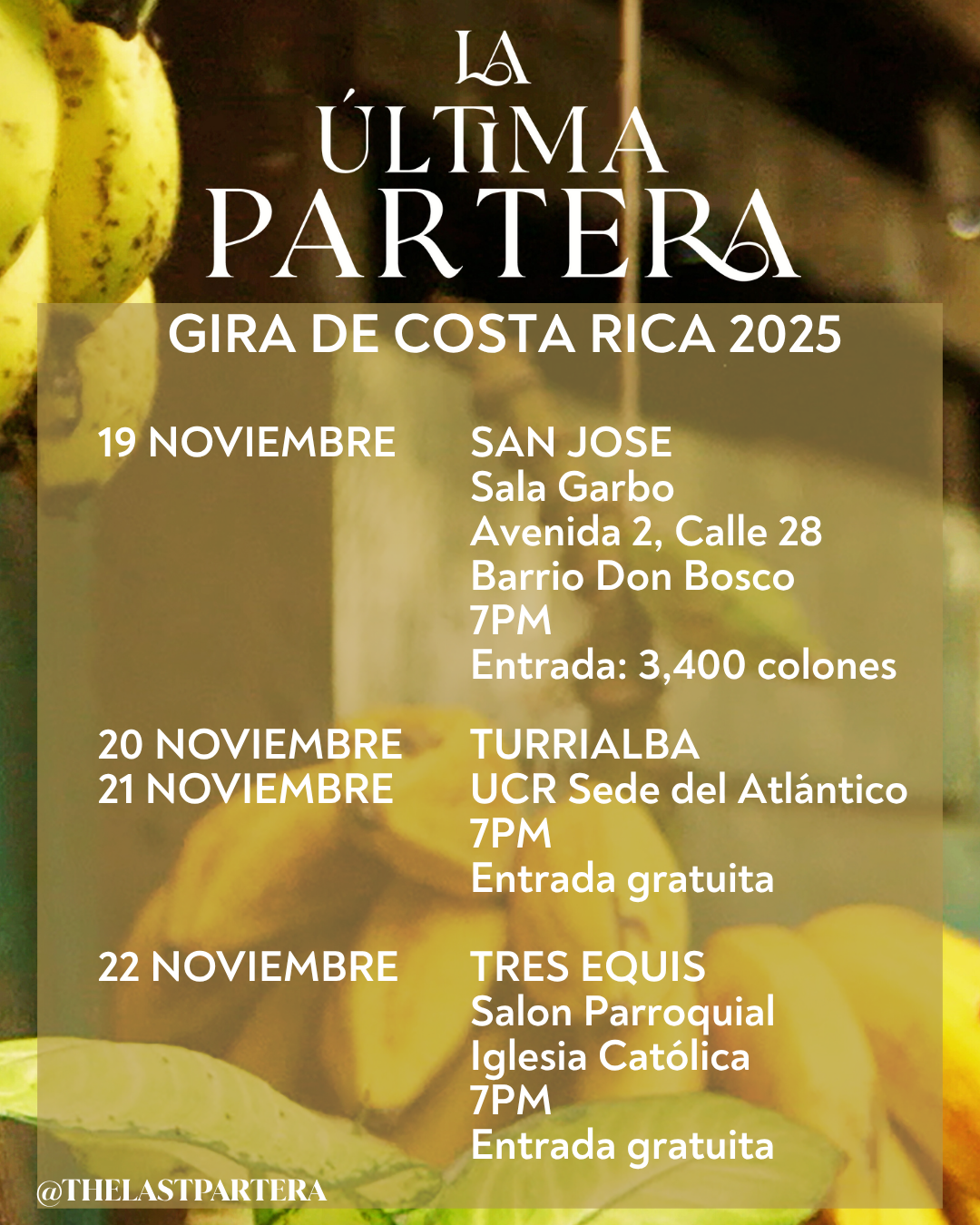 El costo de la entrada es de 3,400 colones (más cargo por servicio) y puede adquirirse en el sitio web o en la sala el día del evento.
