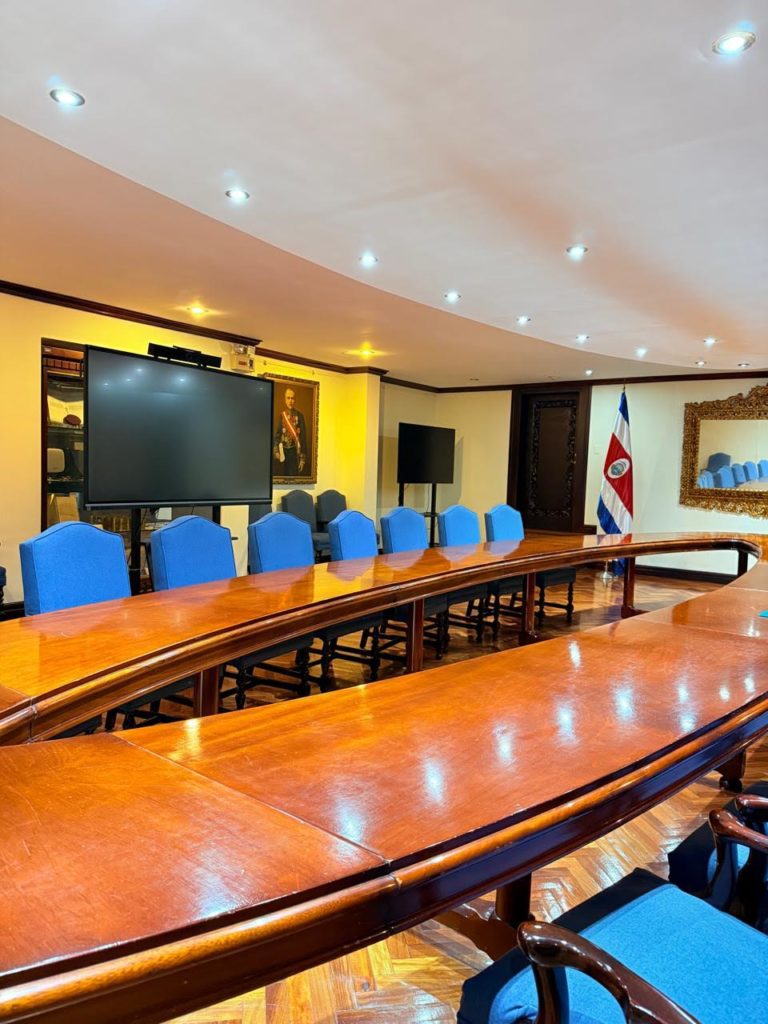 En el corazón de la Casa Amarilla, sede del Ministerio de Relaciones Exteriores y Culto, reposa una mesa que ha sido testigo silencioso de los más trascendentes encuentros diplomáticos de la historia reciente de Costa Rica: la mesa ovalada del Salón de las Américas, también conocido como el Salón Azul.