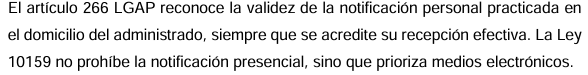 Más adelante, la resolución usa el artículo 266 LGAP para validar notificaciones personales practicadas en el domicilio del administrado, cuando lo único que ese precepto regula es el horario mínimo de atención de las oficinas públicas.