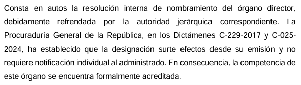 Una revisión mínima de esos dictámenes deja claro que nada dicen sobre el tema que la resolución pretende justificar. El dictamen C-229-2017 trata sobre la organización jerárquica entre diferentes tipos de órganos dentro del aparato estatal —una cuestión administrativa interna—, mientras que el PGR-C-025-2024 aborda los supuestos de nulidad absoluta de los actos administrativos, vinculados al artículo 173 de la LGAP. Ninguno regula designaciones ni notificaciones, pero ambos fueron citados como si lo hicieran. Es la demostración de cómo se puede invocar la Procuraduría para vestir de legalidad lo que carece de ella.
