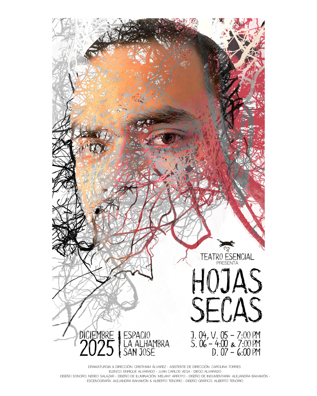 Una voz femenina en off atraviesa toda la obra, recordando que la memoria también tiene voz de mujer y que las historias familiares se escriben desde múltiples miradas. El público, al final, se convierte en parte de la trama al ser interpelado directamente. Con una puesta en escena minimalista y cargada de simbolismos, Hojas secas combina teatro íntimo, poesía escénica y realismo emocional, en una reflexión profunda sobre las masculinidades contemporáneas y los silencios que marcan generaciones.