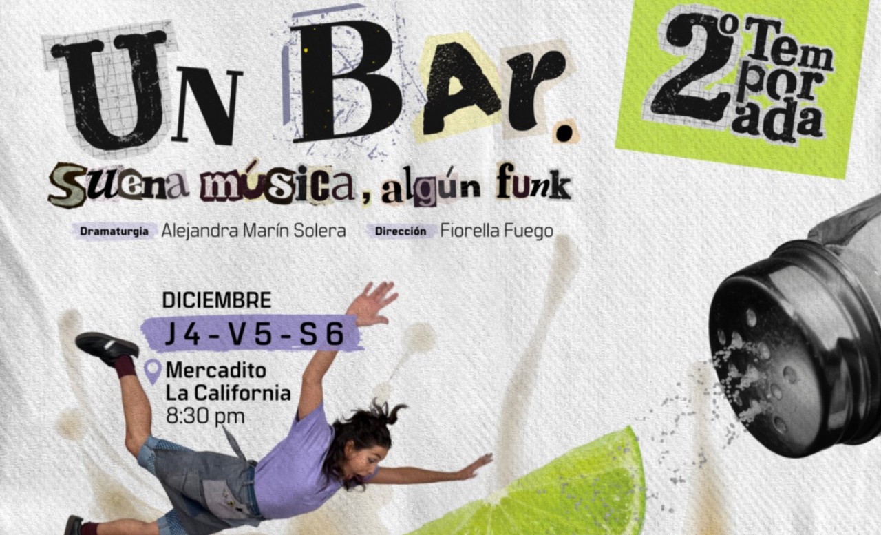 La obra treatral Un Bar. Suena música, algún funk, una obra de teatro independiente que propone una experiencia inmersiva, cercana y vivencial, regresa con una segunda temporada esta vez en el Mercadito de La California, como una experiencia más cercana: compartir con amistades, tomar alguna bebida y, al mismo tiempo, ser parte de la historia que se desarrolla.