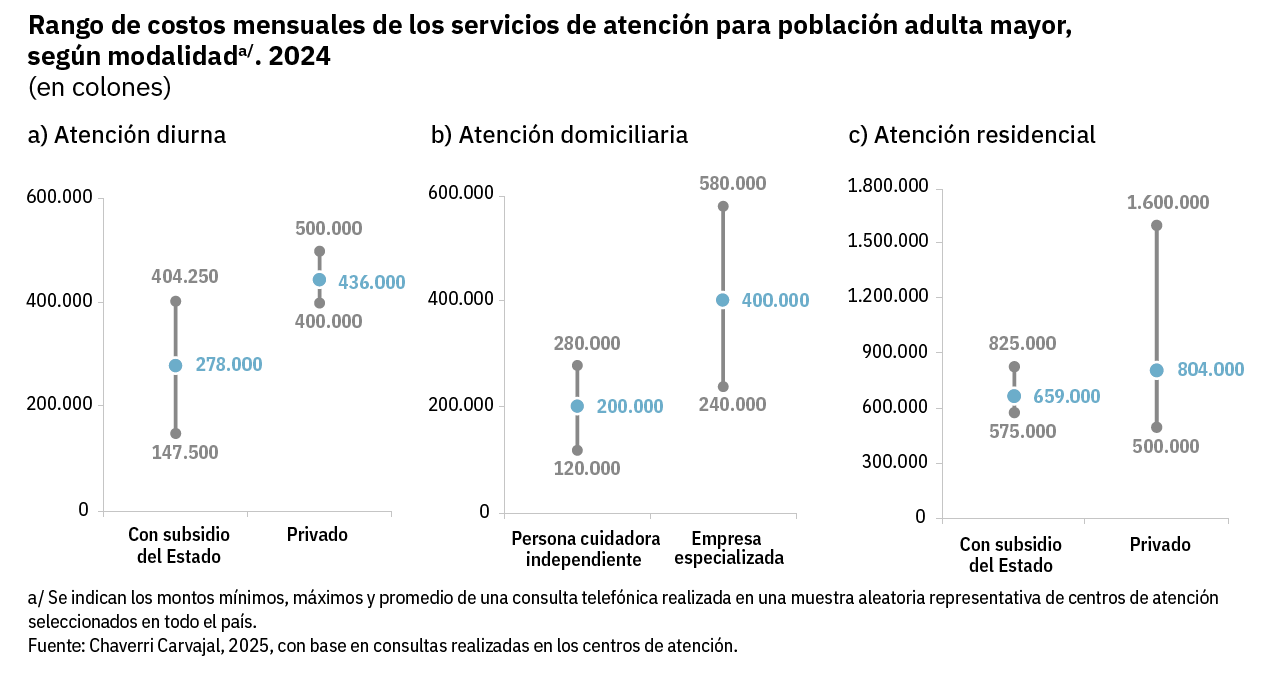 En el documento se incluye un estudio sobre los costos de atención de personas adultas mayores, en el que se visualiza que los servicios privados son inaccesibles para la mayoría de los hogares, a raíz de que: