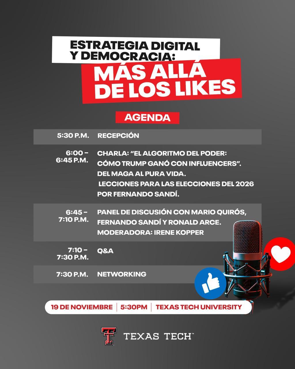 En un contexto político cada vez más mediado por las redes sociales y los desafíos globales del cambio climático, Texas Tech University Costa Rica refuerza su papel como plataforma académica para la reflexión ciudadana y el pensamiento crítico de las nuevas generaciones.