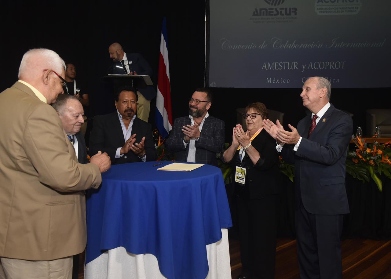 Uno de los momentos más significativos de la jornada fue la firma de un convenio de colaboración entre ACOPROT y AMESTUR, un acuerdo que fortalece una relación académica construida durante varios años por medio de programas, cursos y conferencias internacionales. La nueva alianza permitirá ampliar las oportunidades de formación continua, cooperación técnica y desarrollo profesional para el talento humano del turismo en ambos países.