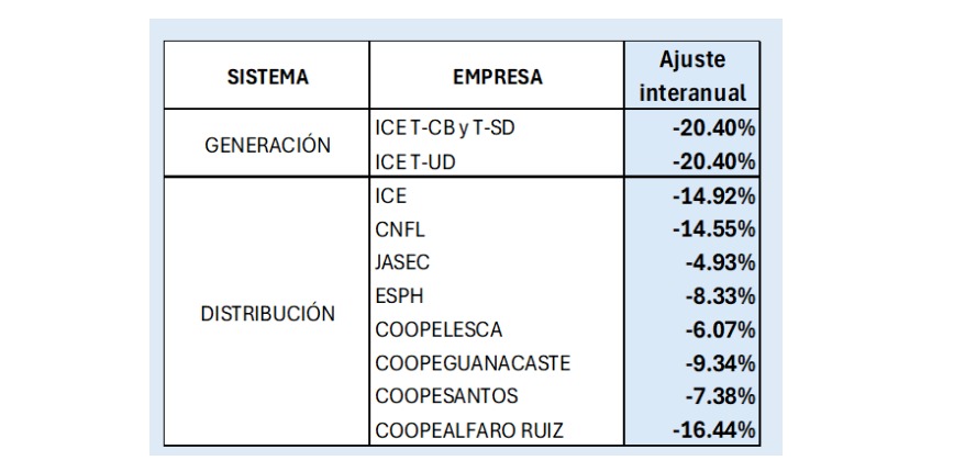 Esta rebaja aplica para todos los sectores de consumo -industrial, comercial y residencial-, con variaciones según la empresa distribuidora. La Aresep recordó que los abonados de alta tensión tendrán la tarifa más baja registrada en los últimos 15 años, lo que estimula la operación de empresas electro intensivas.