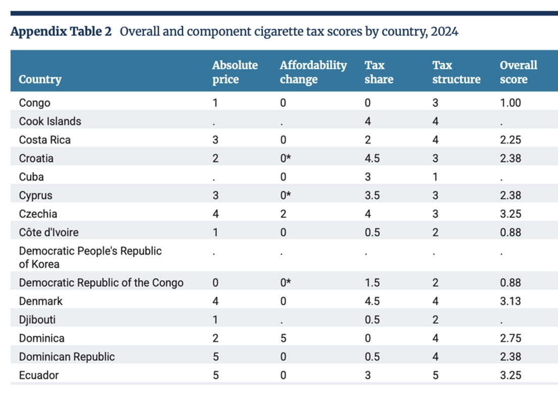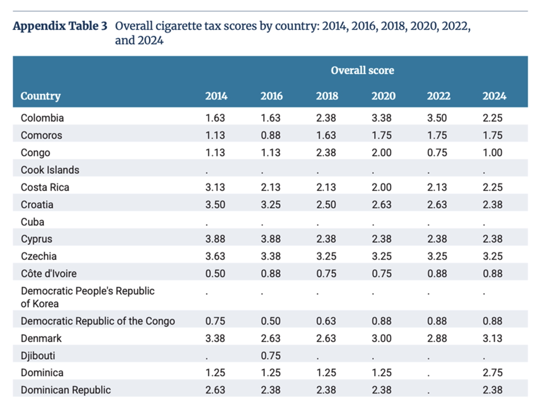 El consumo de tabaco es una de las principales causas de muerte prevenible a nivel mundial y los impuestos al cigarrillo continúan siendo una de las herramientas más eficaces para reducir su consumo, además de generar ingresos fiscales. No obstante, el estudio señala que la puntuación promedio mundial se mantiene prácticamente estancada desde 2022.