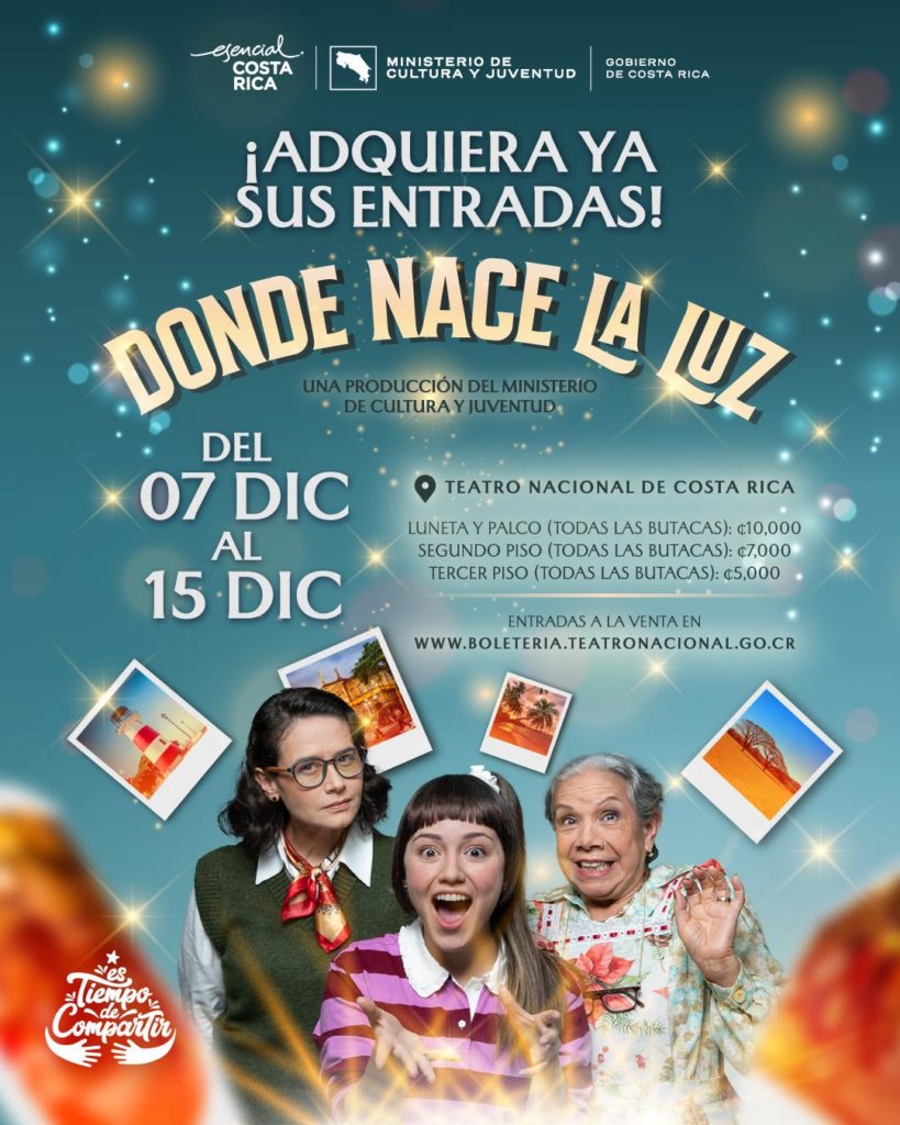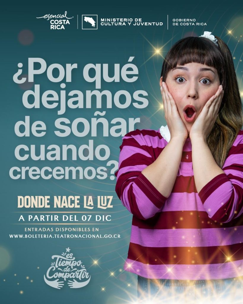 El Ministerio de Cultura y Juventud presentará “Donde nace la luz”, un espectáculo escénico de gran formato que se estrenará en el Teatro Nacional de Costa Rica del 7 al 14 de diciembre. La propuesta integra teatro, danza contemporánea y música sinfónica en vivo, y constituye la primera producción navideña de este tipo realizada por la institución.