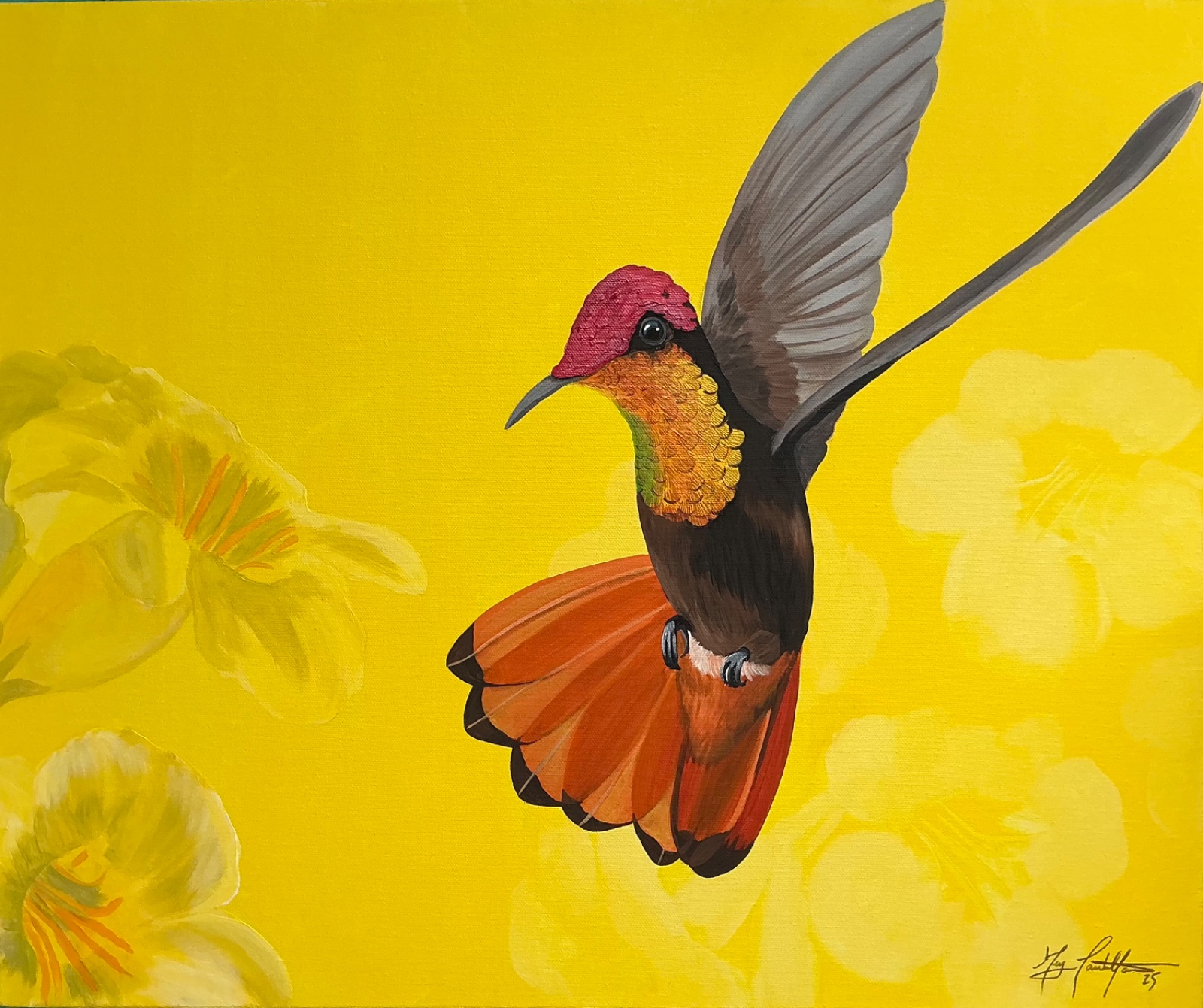 - Mey Cantillano presenta Cromática en vuelo, una exploración vibrante de la relación de equilibrio entre el color y la naturaleza, utilizando al colibrí y las flores como sujetos de un estudio cromático-sensorial.