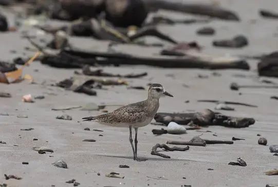 El chorlito dorado menor (Pluvialis dominica) es un visitante casual de América del Norte. Resalta su pico delgado, su coronilla y su espalda pardas y su ceja blanca. Se observa en los pastos y en las rocas de las bahías Wafer y Chatham.