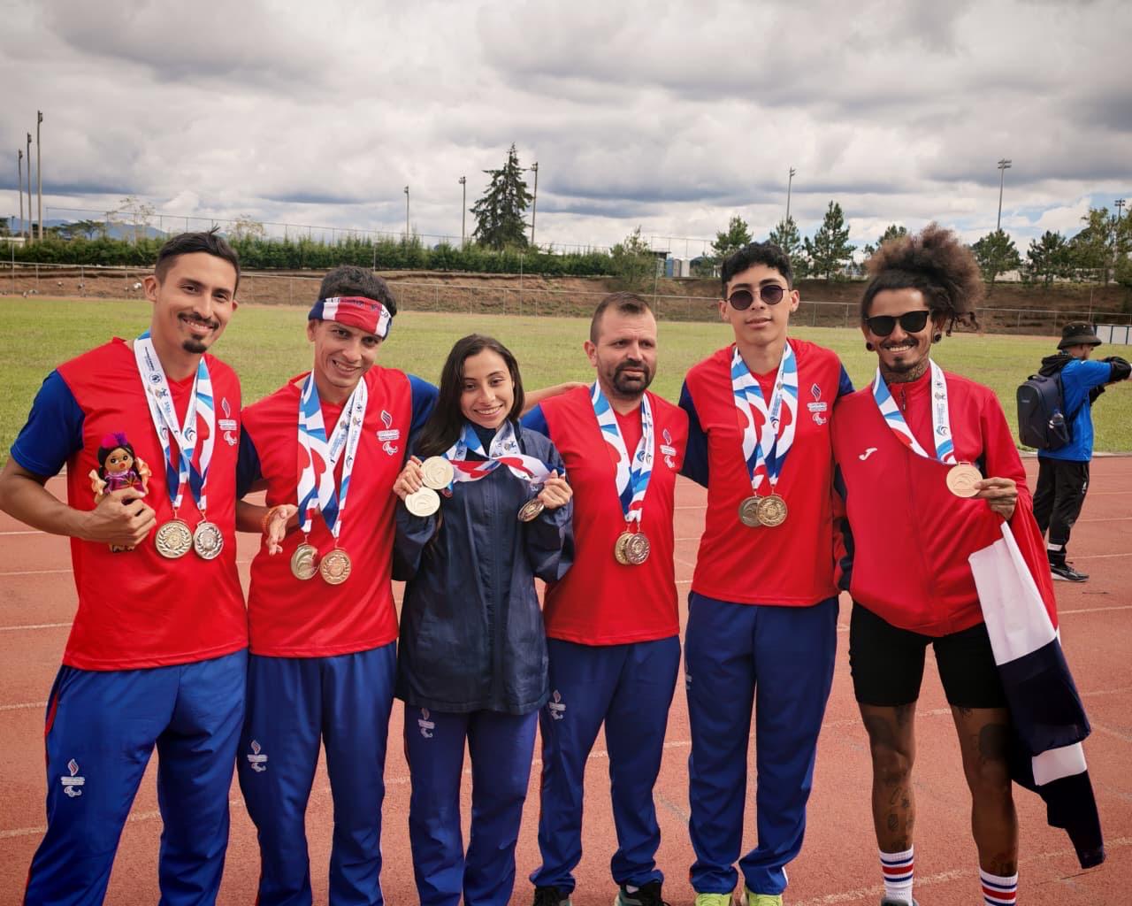 En total, la delegación costarricense obtuvo 10 medallas en el paratletismo, distribuidas en cinco oros, tres platas y dos bronces. Los primeros lugares también llegaron con Juan Daniel Mena, oro en los 1500 metros clase T20, y Vladimir Garro, oro en los 400 metros clase T11.