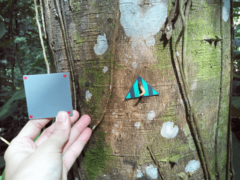 Esquivel, junto con Iliana Medina, de la Universidad de Melbourne, Australia, y William Allen, de la Universidad de Swansea, Reino Unido, lideraron un experimento global realizado en seis continentes, replicado en 21 países, en bosques tropicales, zonas templadas y ambientes con distintos grados de intervención humana. Se utilizaron más de 15.000 presas artificiales: pequeñas “mariposas” de papel en tres coloraciones: naranja y negro (aposematismo clásico), café críptico y azul con negro, un patrón poco frecuente en la naturaleza, cada una acompañada por una larva de tenebrio que funcionaba como recompensa para los depredadores.