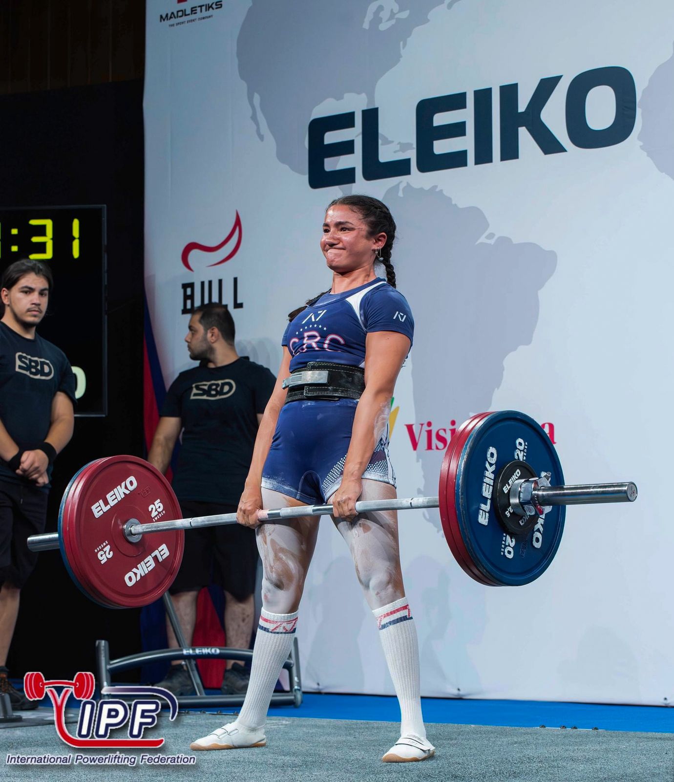 Competí internacionalmente por primera vez en 2023 en Islas Caimán, donde quedé de campeona norteamericana U18. Después de eso, en 2024 quedé de campeona mundial en press de banca en EE UU, también subcampeona clásica U18 en Malta; y después de este año logré quedar campeona mundial equipada U18 en nuestro propio país”.