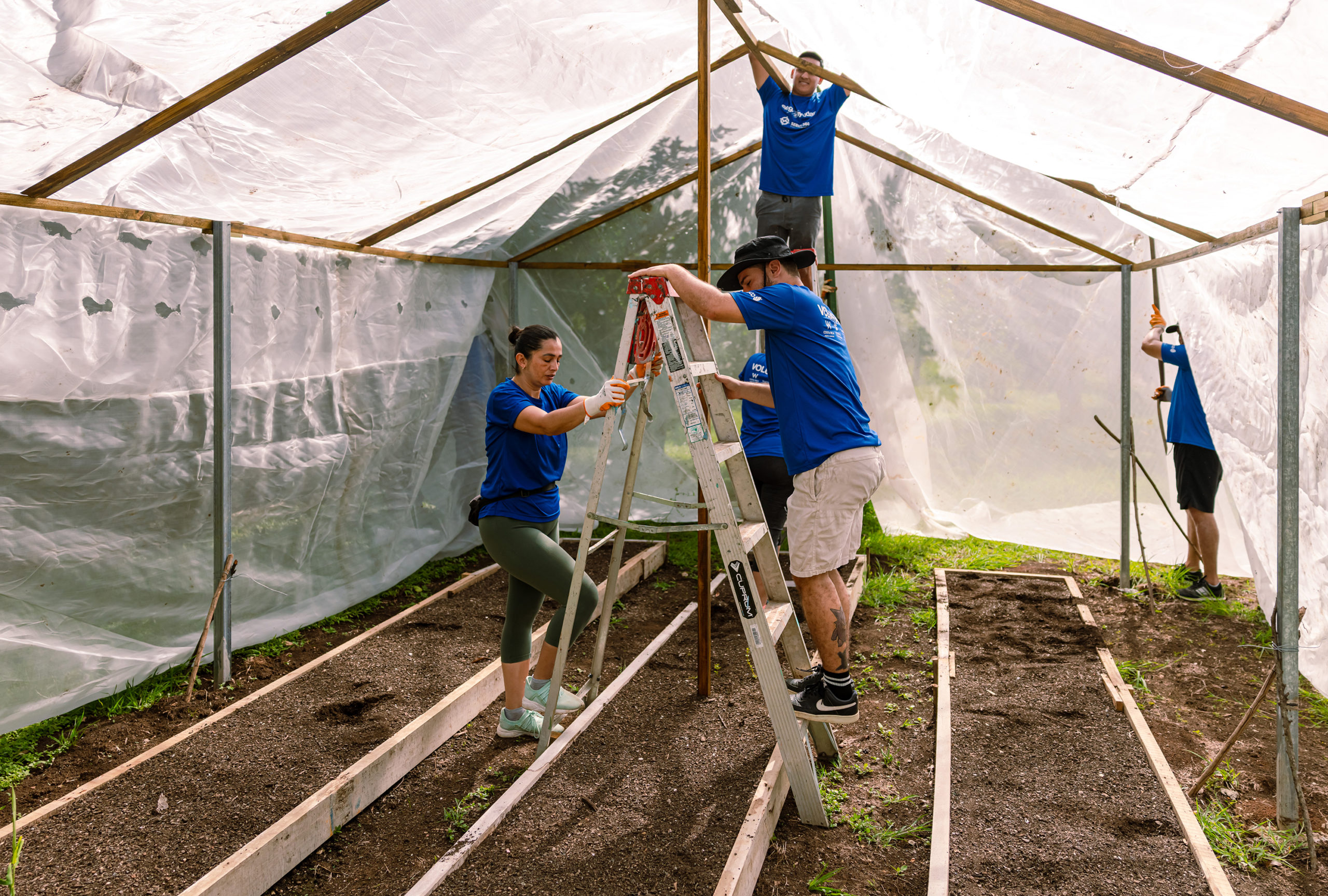 La iniciativa surgió a partir de la propuesta de un colaborador de Reserva Conchal y fue desarrollada junto con el centro y el equipo de inversión social de la empresa. En total, 57 voluntarios participaron en dos jornadas de ocho horas cada una, sumando 456 horas de trabajo destinadas a preparar el terreno, instalar la infraestructura y sembrar cultivos como tomate, ayote, rábano, culantro, zapallo, cebollín, albahaca morada, tomillo y perejil. Los insumos, materiales y mano de obra fueron aportados en su totalidad por la operación.