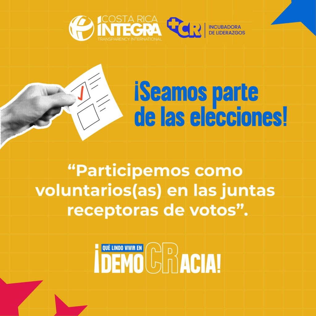 La campaña ¡Qué lindo vivir en demoCRacia!, impulsada por la asociación Costa Rica Íntegra y la Incubadora de Liderazgos +Costa Rica, hizo un llamado a la ciudadanía para participar como voluntaria en las elecciones nacionales del próximo 1 de febrero, ante la posible falta de miembros de mesa en algunas juntas receptoras de votos (JRV).