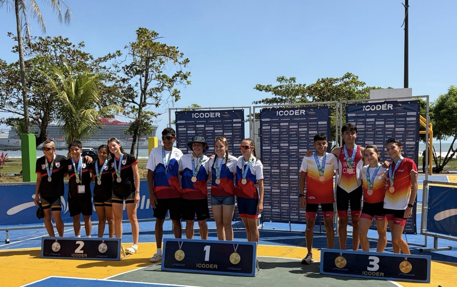 Con el acumulado de ambas jornadas, Cartago se coronó campeón del triatlón masculino, superando a Alajuela y Belén. En la rama femenina, San Carlos se dejó el primer lugar, seguido por Alajuela y Cartago, que completó el podio.