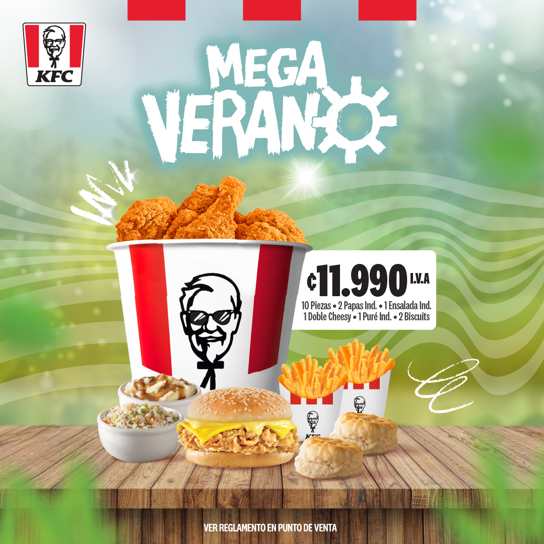 La propuesta está compuesta por 10 piezas de pollo, 2 papas individuales, 1 ensalada individual, 1 hamburguesa Double Cheesy, 1 puré individual y 2 biscuits, con un precio de ₡11.990 colones. Su formato responde a las dinámicas del verano, en las que los consumidores priorizan practicidad, conveniencia y opciones que permitan compartir.