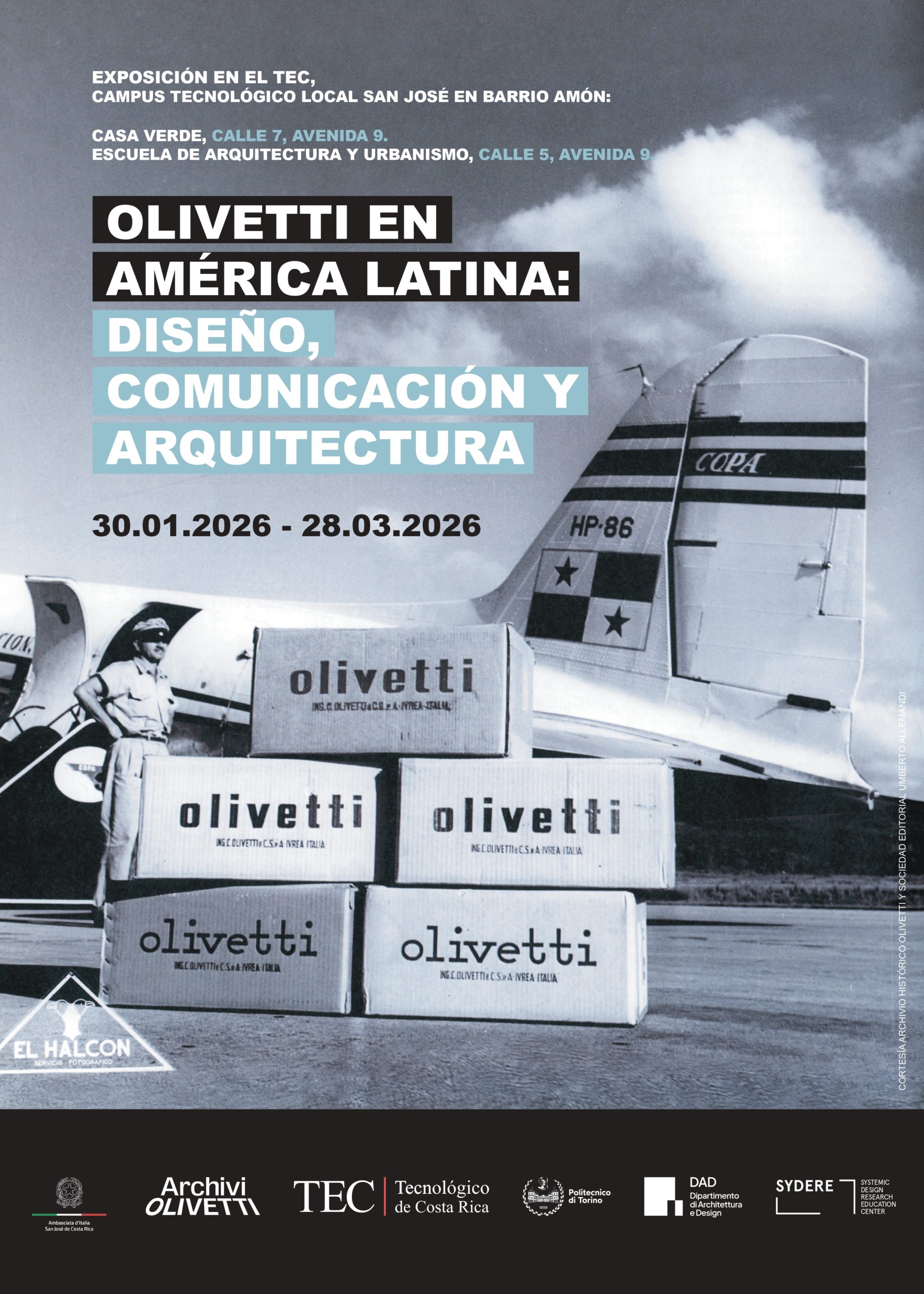 El recorrido temático se distribuye entre ambas sedes. En la Escuela de Arquitectura y Urbanismo del TEC se abordará Olivetti y el diseño italiano, así como la innovación industrial y la cultura del trabajo en América Latina.