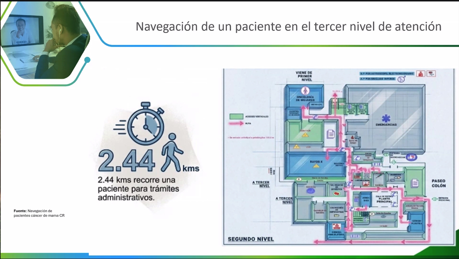 Por ejemplo, la especialista comentó que en Costa Rica, una paciente con cáncer de mama debe “navegar” recorrer una distancia de casi 2.44 kilómetros entre ventanillas para trámites administrativos, en hospitales.