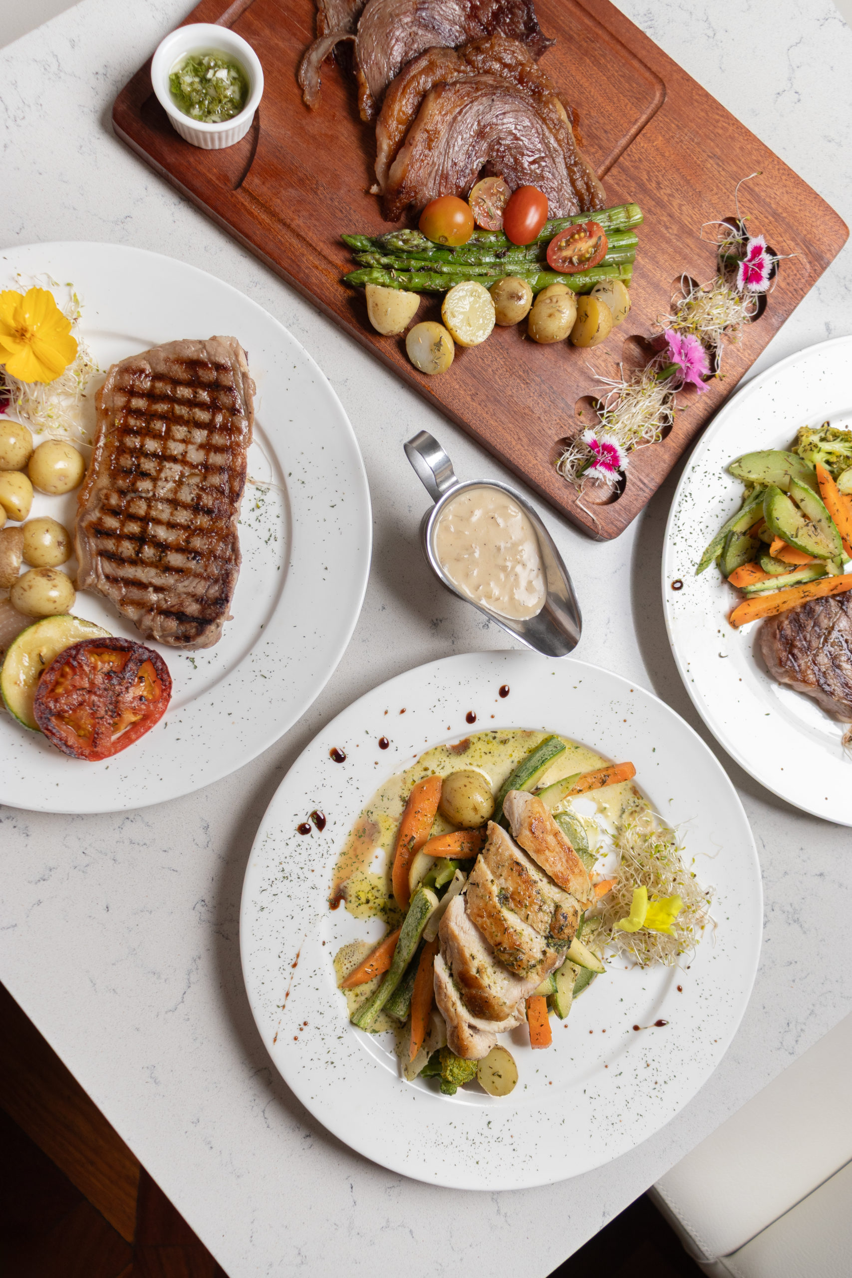También Fogo dispone del especial de almuerzo de 11y30 am a 4:00pm con opción de churrasco flambeado, new york steak pechuga de pollo al pesto, picanha al carbón, acompañados de ensalada verde, vegetales a la parrilla y copa de vino de la casa.