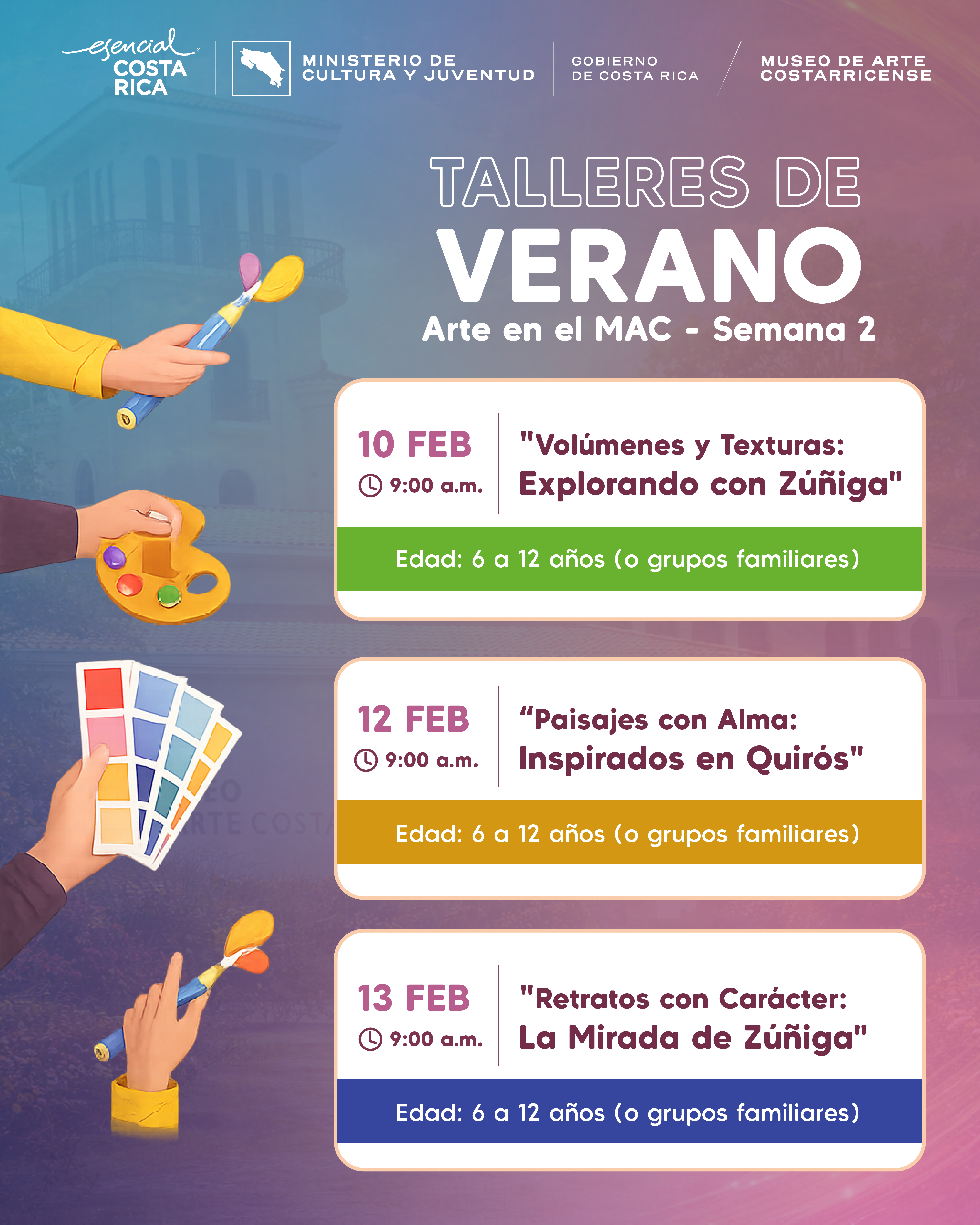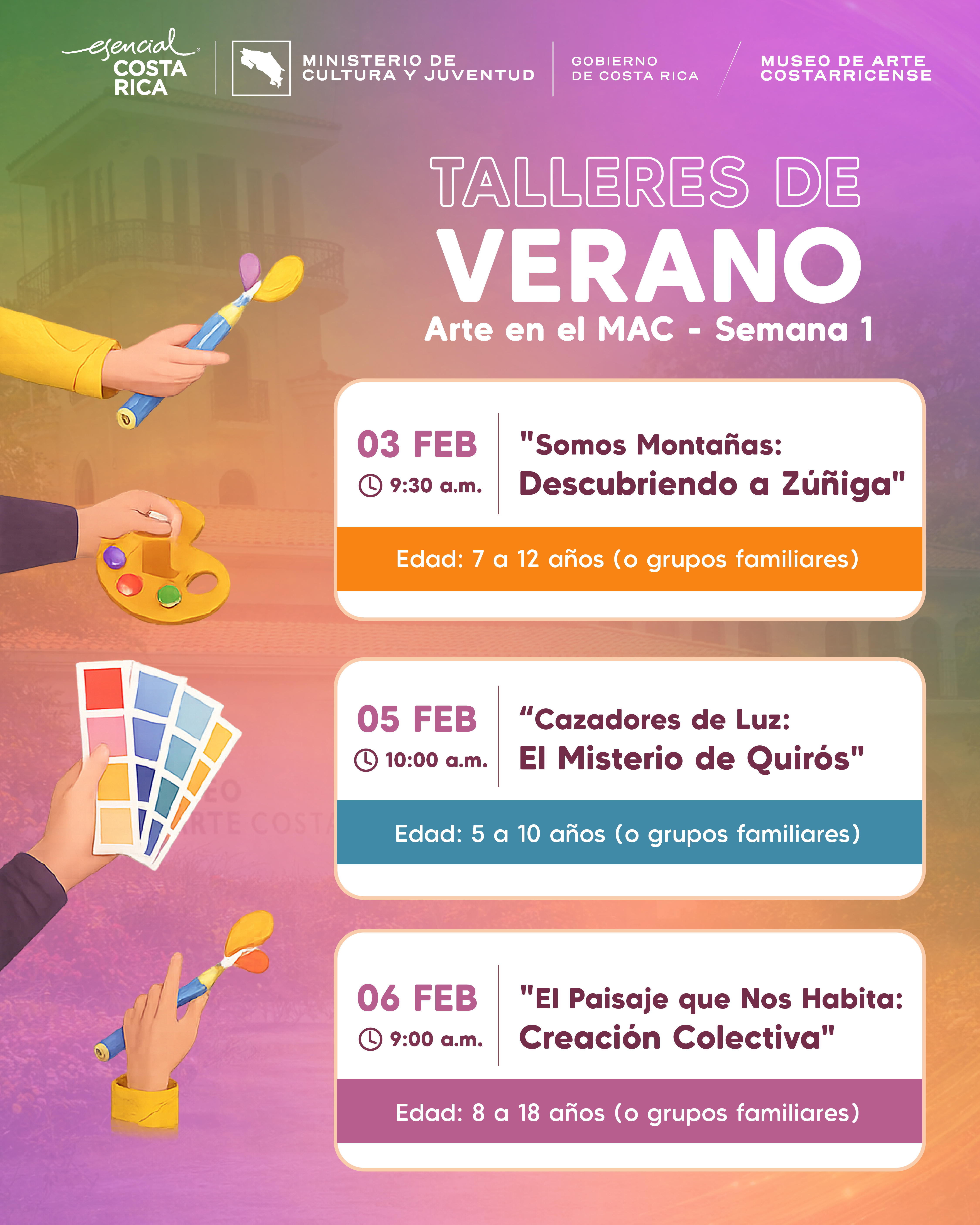 El Ministerio de Cultura y Juventud (MCJ) informó que el Museo de Arte Costarricense (MAC) realizará los Talleres de Verano: Arte en el MAC 2026, una iniciativa dirigida a niñas, niños y familias que se llevará a cabo durante las dos primeras semanas de febrero en las instalaciones del museo, ubicadas en el Parque Metropolitano La Sabana.