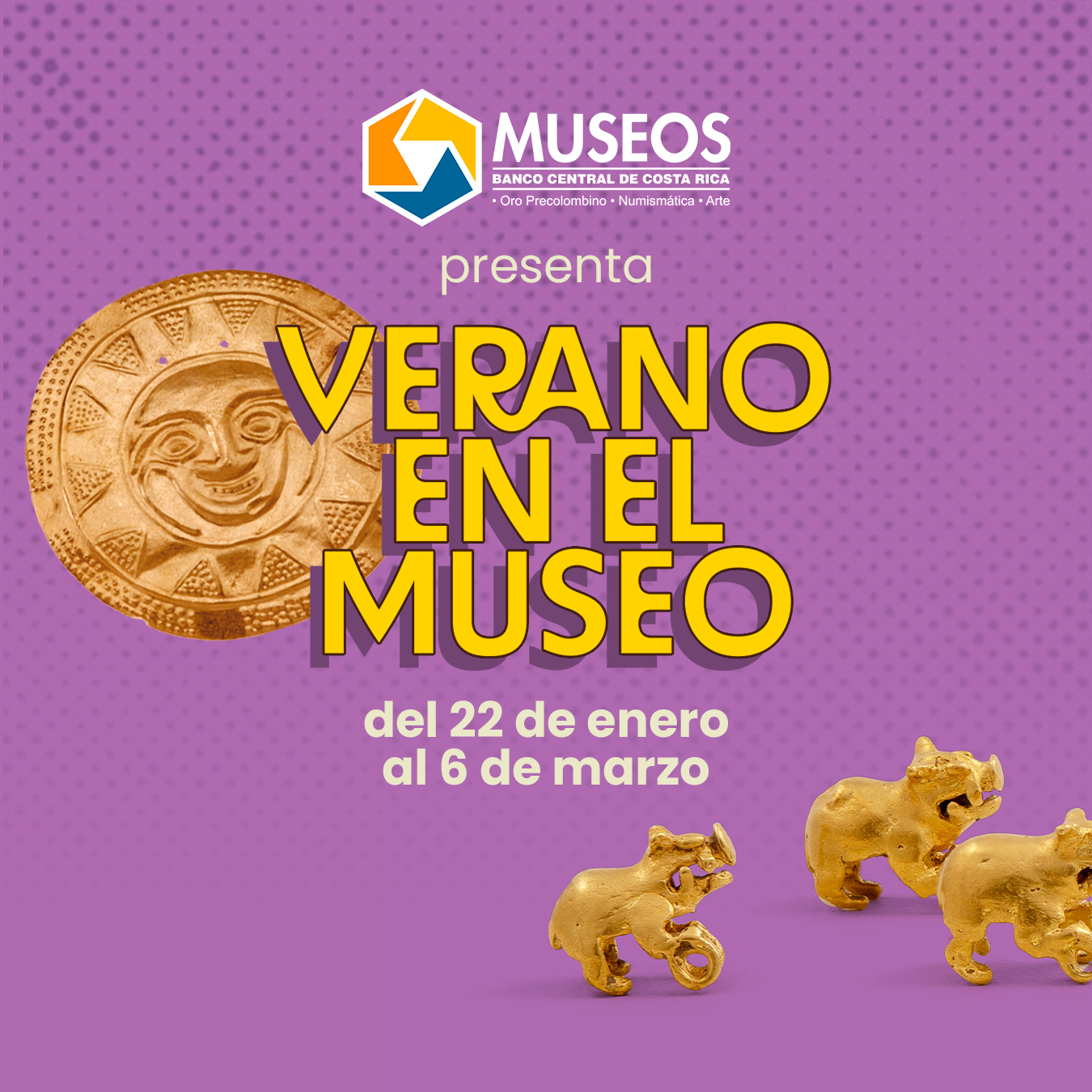 Los Museos del Banco Central de Costa Rica (BCCR), bajo la Plaza de la Cultura, estrenan un nuevo programa Verano en el Museo con el cual ampliarán su horario hasta las 7 p.m. los jueves y viernes desde el 22 de enero al 6 de marzo y ofrecerán variedad de actividades para las diferentes audiencias.