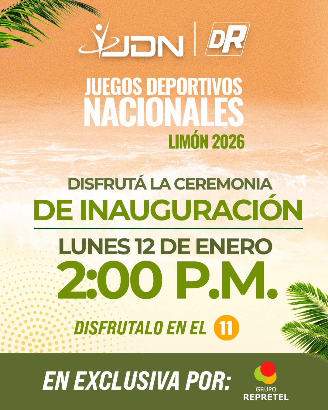 La cobertura iniciará con la ceremonia de inauguración, programada para este lunes 12 de enero a las 2:00 p. m. La señal también estará disponible por Canal 11, Repretel.com y las plataformas digitales de Deportes Repretel.
