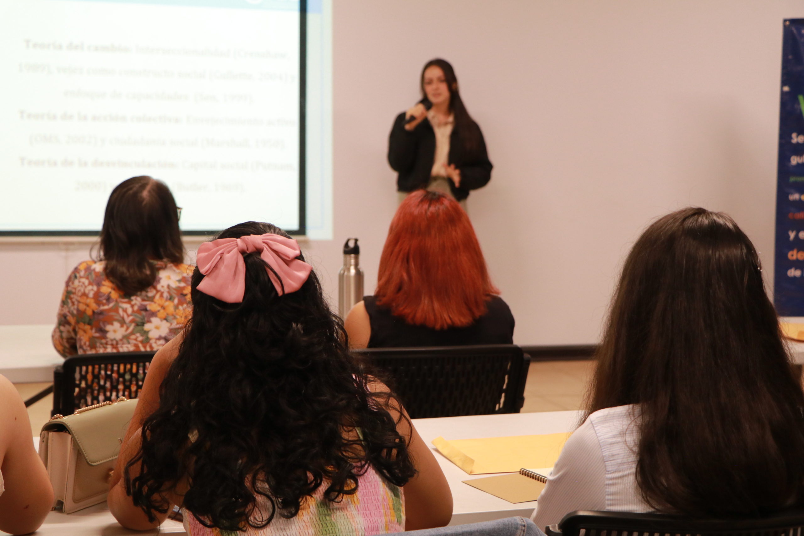 Durante la jornada se presentaron estudios realizados entre 2024 y 2025 en áreas como envejecimiento saludable, salud emocional, participación gerontológica, mitos sobre la vejez, edadismo laboral y diseño de entornos inclusivos.