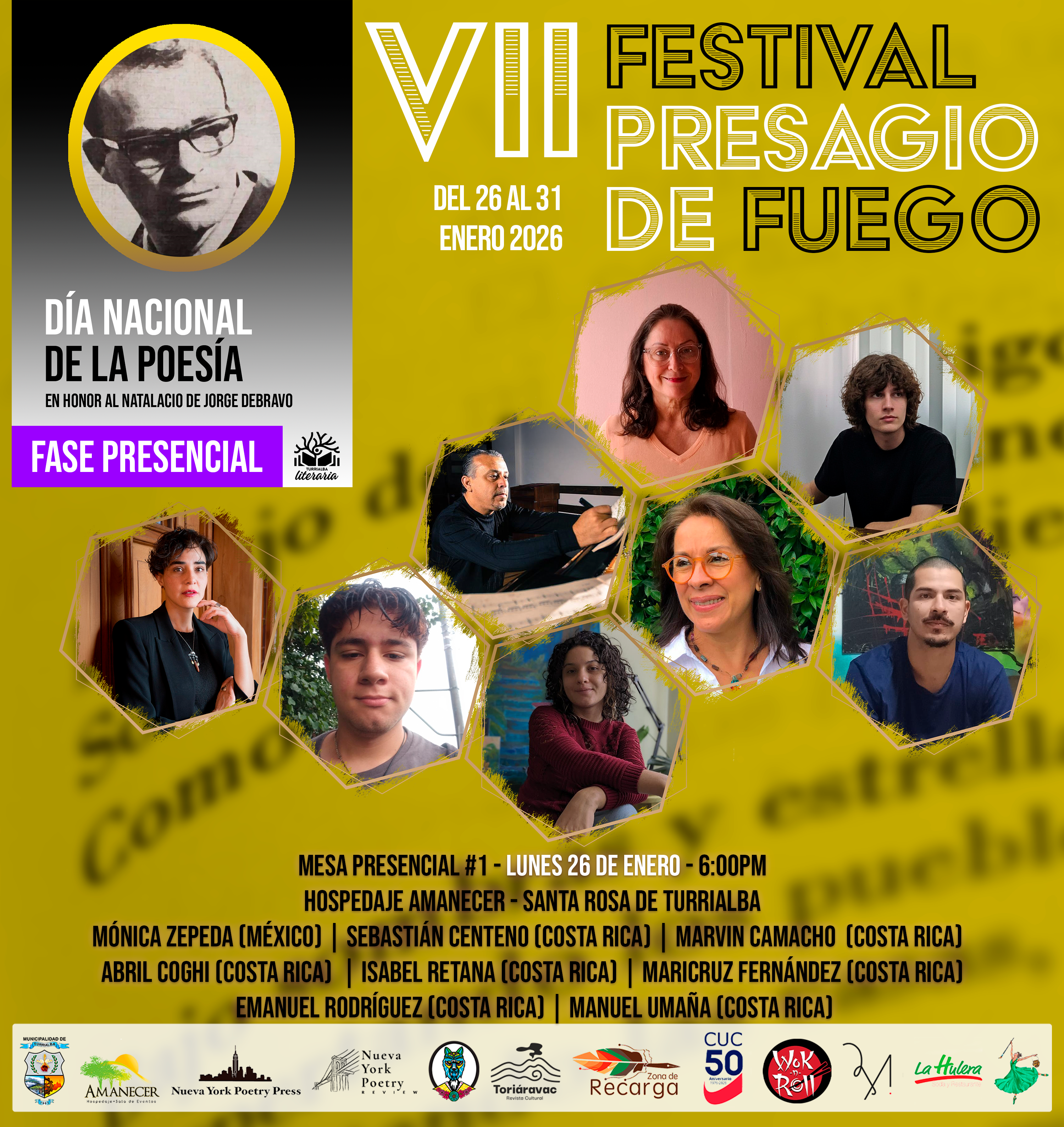 En el marco del Día Nacional de la Poesía, que se conmemora cada 31 de enero en Costa Rica, el cantón de Turrialba será sede de la séptima edición del Festival Presagio de Fuego, una iniciativa organizada por el colectivo Turrialba Literaria en homenaje al legado del poeta Jorge Debravo.