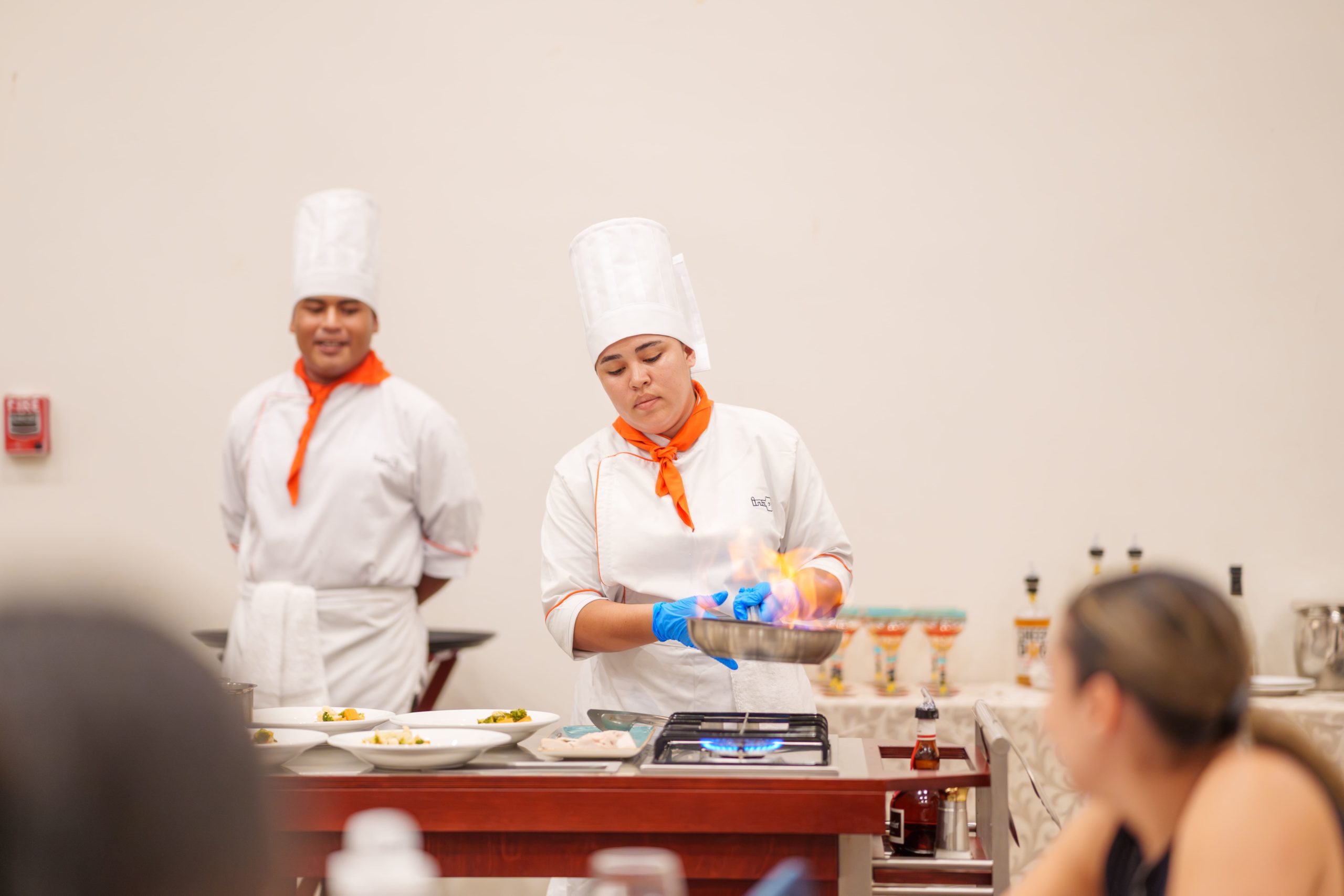 El Programa de Educación Dual se desarrolla en alianza con el INA e incluye una etapa inicial de fortalecimiento en competencias como inglés y habilidades transversales, seguida de un proceso de formación técnica y práctica supervisada, principalmente en áreas como operaciones de asistencia en cocina y servicios de alimentos y bebidas.