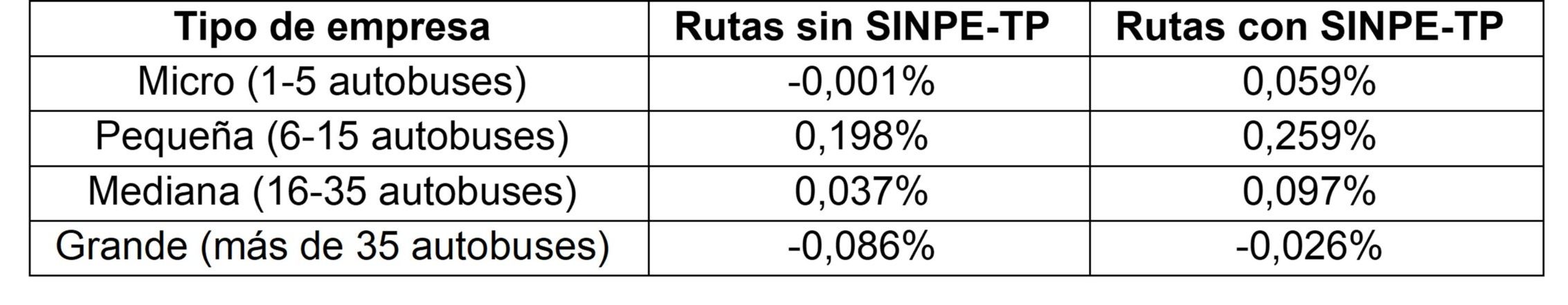 Para el servicio de autobús se proponen ajustes diferenciados según tipo de empresa y si la ruta tiene implementado el sistema de pago electrónico (SINPE-TP por la comisión para el uso de sistema):