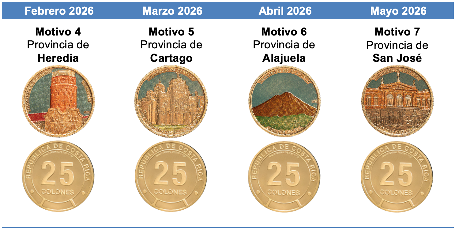 Según señala el BCCR se contará con una moneda de circulación regular que no mostrará colores en su diseño, para su uso como medio de pago y que mantiene su valor nominal de ₡25.
