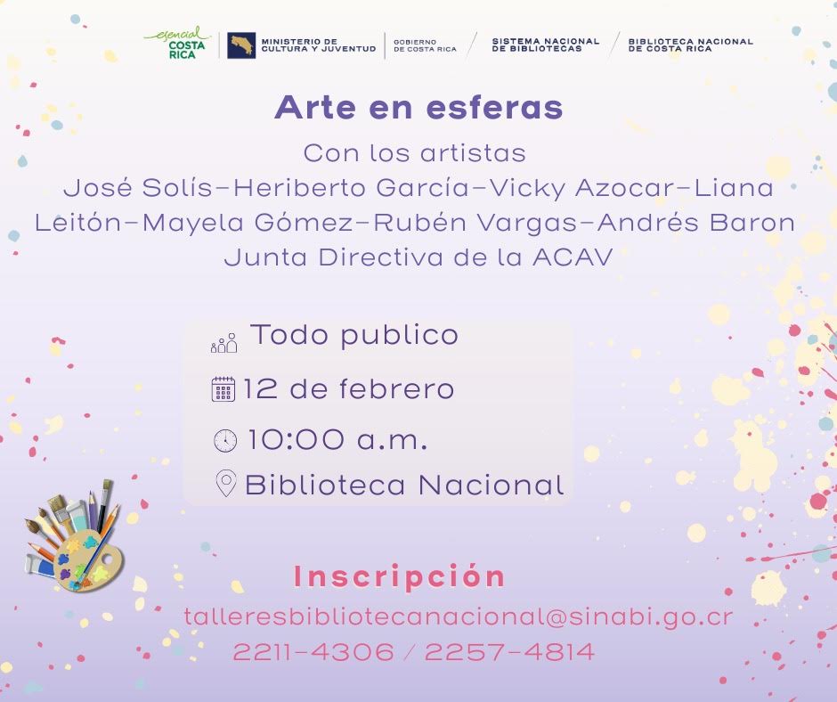 Invitan: Ministerio de Cultura y Juventud, Benemérita Biblioteca Nacional del SINABI y Asociación Costarricense de Artistas Visuales.
