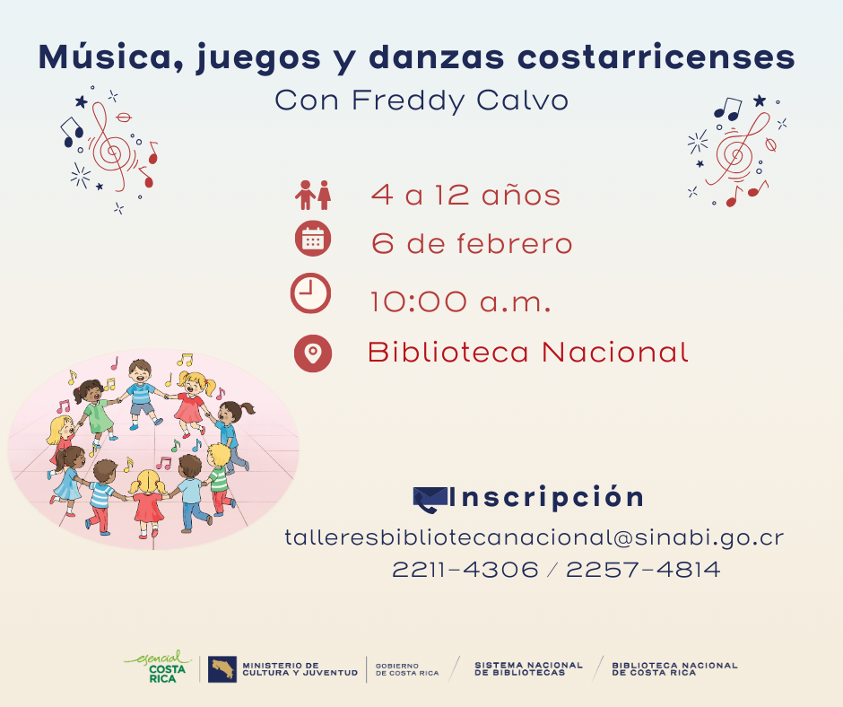 La Benemérita Biblioteca Nacional de Costa Rica anunció su agenda cultural gratuita para la semana del 2 al 8 de febrero, con actividades presenciales y virtuales orientadas al disfrute del patrimonio musical, las tradiciones y la creatividad infantil.
