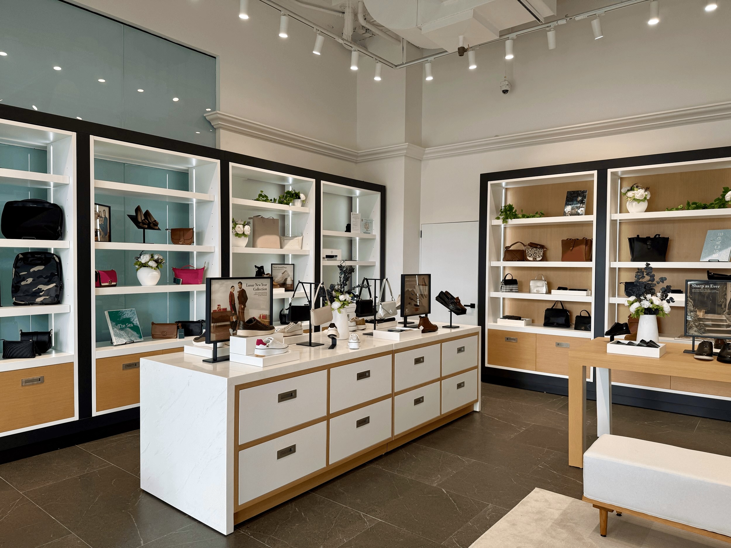 La tienda Cole Haan Aleste presenta un diseño luminoso y acogedor, con acabados en tonos claros que aportan una estética limpia y contemporánea. Cuenta con pantalla digital integrada que exhibe los más recientes lanzamientos de la marca, enriqueciendo una experiencia de compra inmersiva. Una pared de exhibición cuidadosamente diseñado, destaca las colecciones insignia, desde GrandPrø Sneakers y la línea Golf, hasta ØriginalGrand y ZERØGRAND Oxfords. Además, cuenta con displays personalizados que muestran la selección de temporada para hombre y mujer dentro de un entorno de retail de alto nivel.