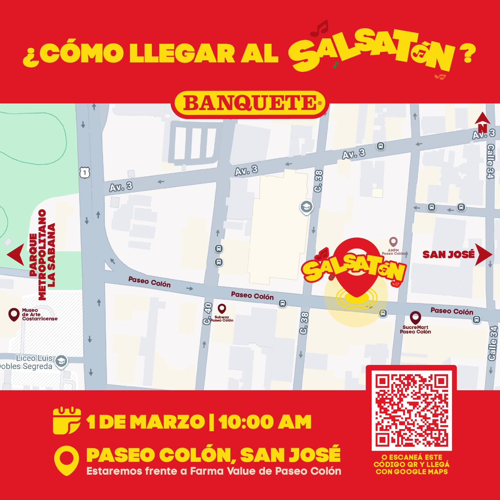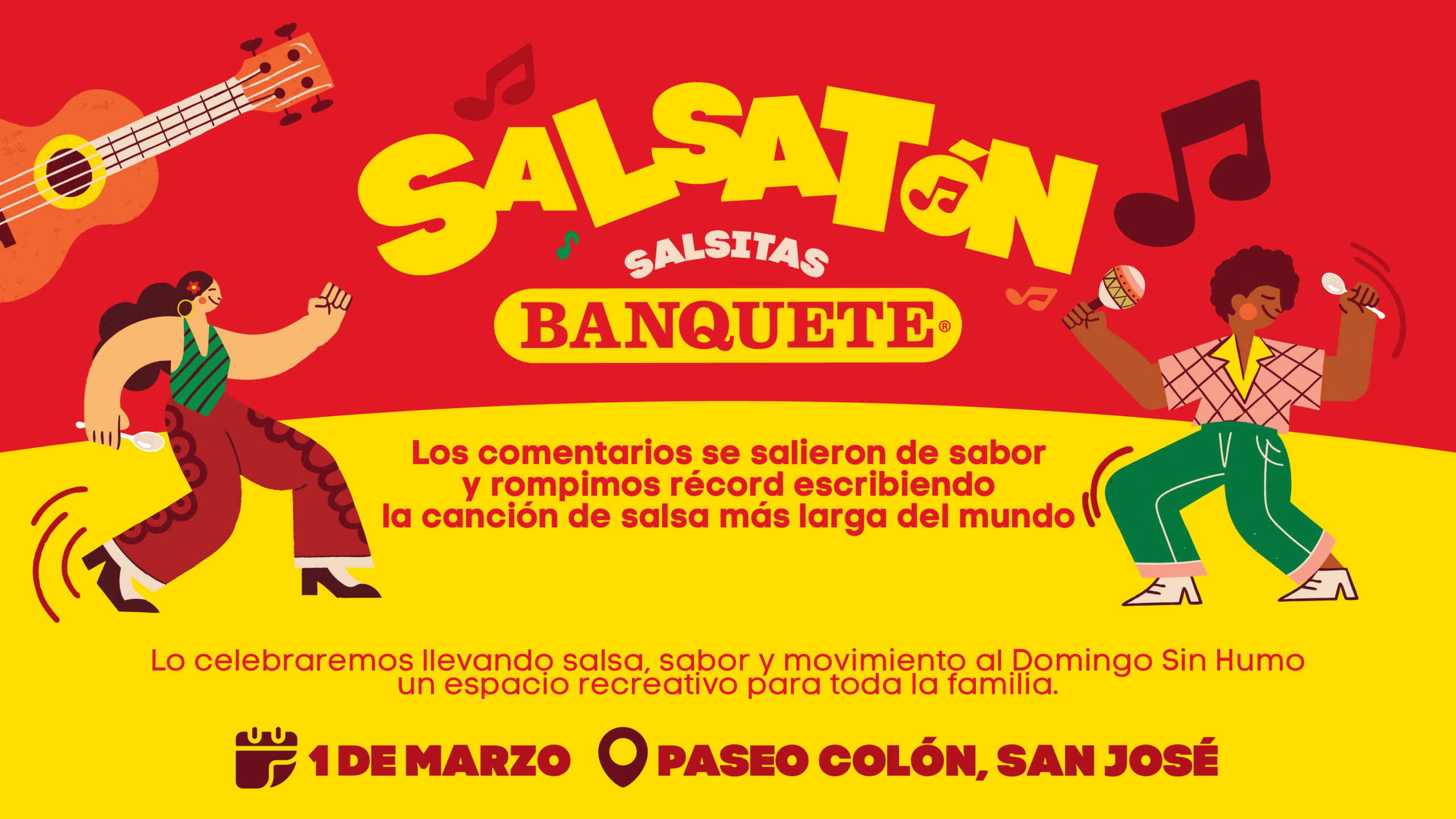 Como parte de esta celebración, la marca invita a las personas a sumarse a La Salsatón Banquete, este domingo 1 de marzo a las 10:00 a.m. en Paseo Colón, en el marco de los Domingos Familiares Sin Humo, organizados por la Municipalidad de San José. El evento será abierto al público y estará diseñado para que personas de todas las edades puedan reunirse, bailar y celebrar esta canción colectiva con todo el sabor de la salsa.