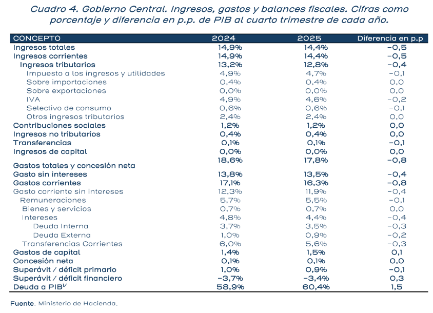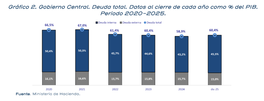 La deuda del Gobierno Central volvió a situarse por encima del 60% del producto interno bruto (PIB) al cierre de 2025, lo que activará el tramo más restrictivo de la regla fiscal para la formulación del presupuesto nacional de 2027.