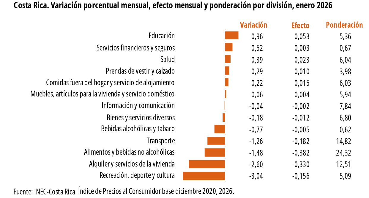 El Instituto Nacional de Estadística y Censos (INEC) presentó hoy los resultados del Índice de Precios al Consumidor (IPC) a enero de 2026, que indican una variación interanual de -2,53%.