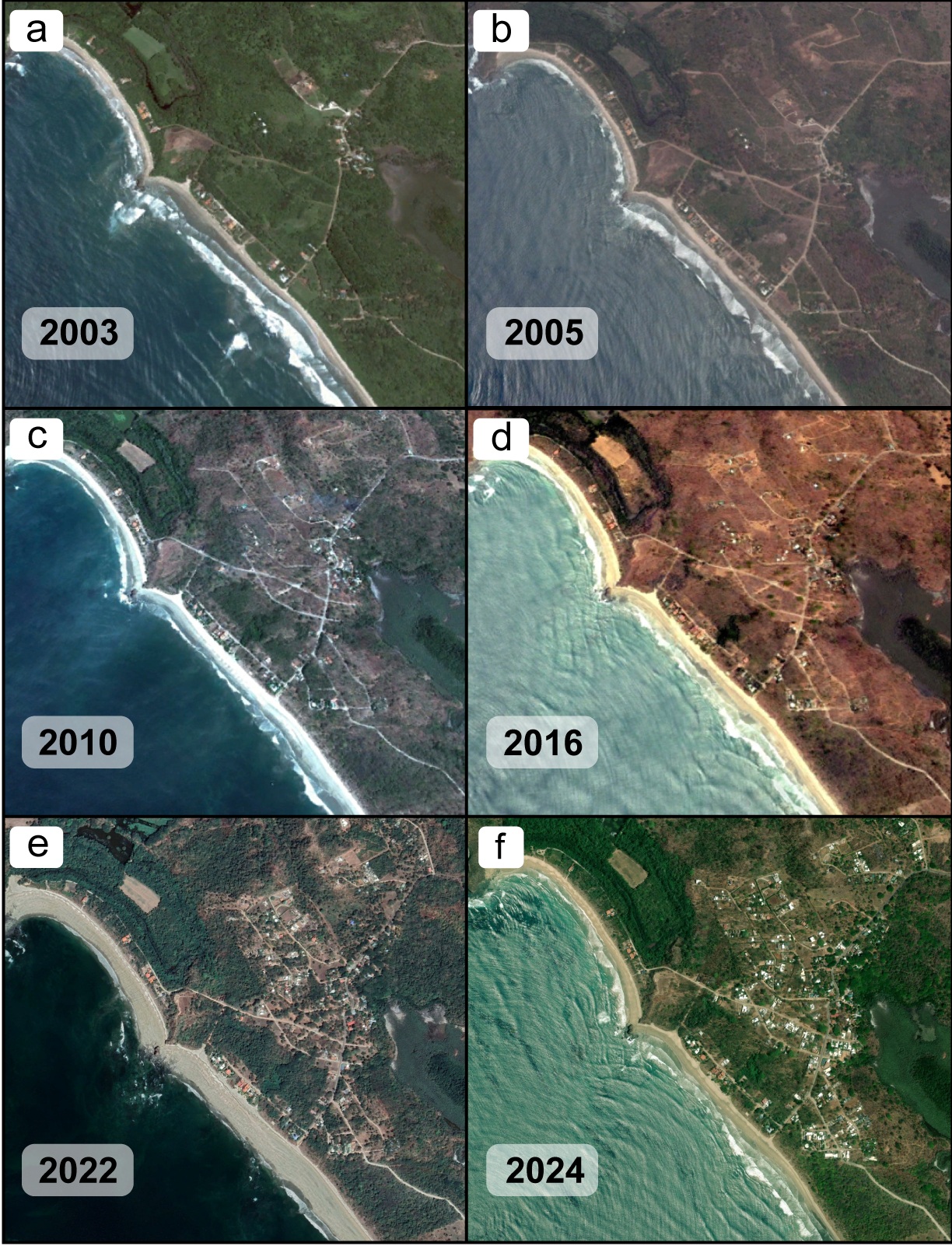 El análisis determinó que el número de construcciones pasó de 47 en 1991 a 487 en 2024. Playa Grande Norte registró el mayor crecimiento, al pasar de nueve edificaciones a 311 en ese periodo.