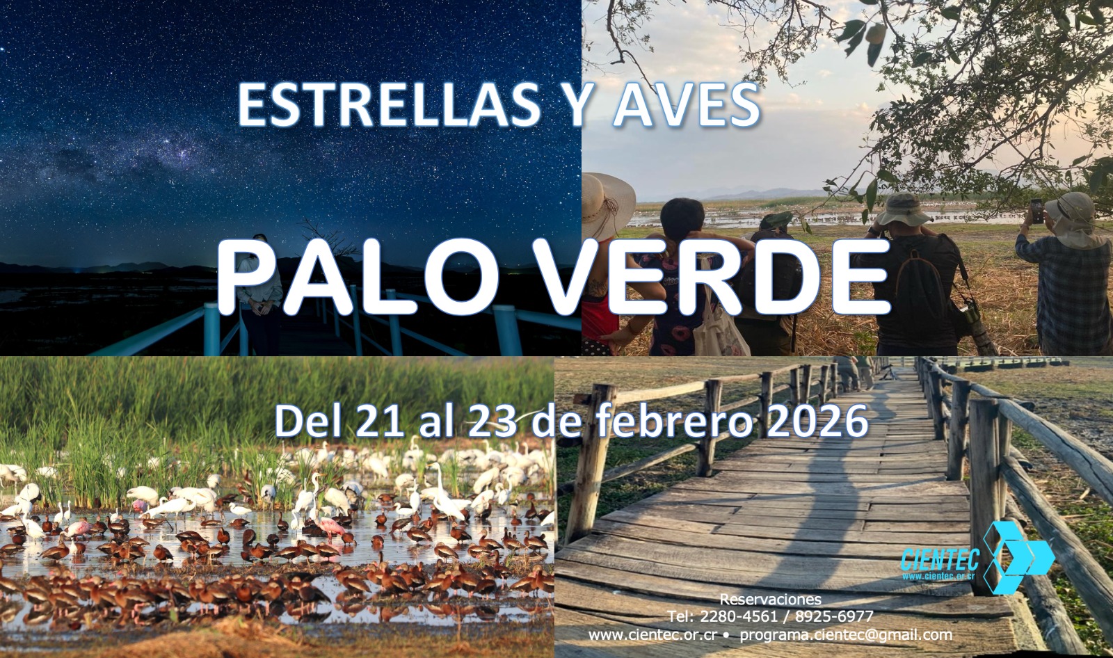 Entre el 21 y el 23 de febrero, Cientec realizará la gira Estrellas y Aves, una visita anual al Parque Nacional Palo Verde que combina la observación astronómica con el reconocimiento de uno de los humedales más importantes del país. Durante dos noches consecutivas, las personas participantes podrán observar hasta seis planetas y una amplia variedad de objetos celestes desde un entorno de cielos oscuros, en un sitio declarado RAMSAR por su relevancia internacional y su alta biodiversidad, especialmente de aves acuáticas migratorias.