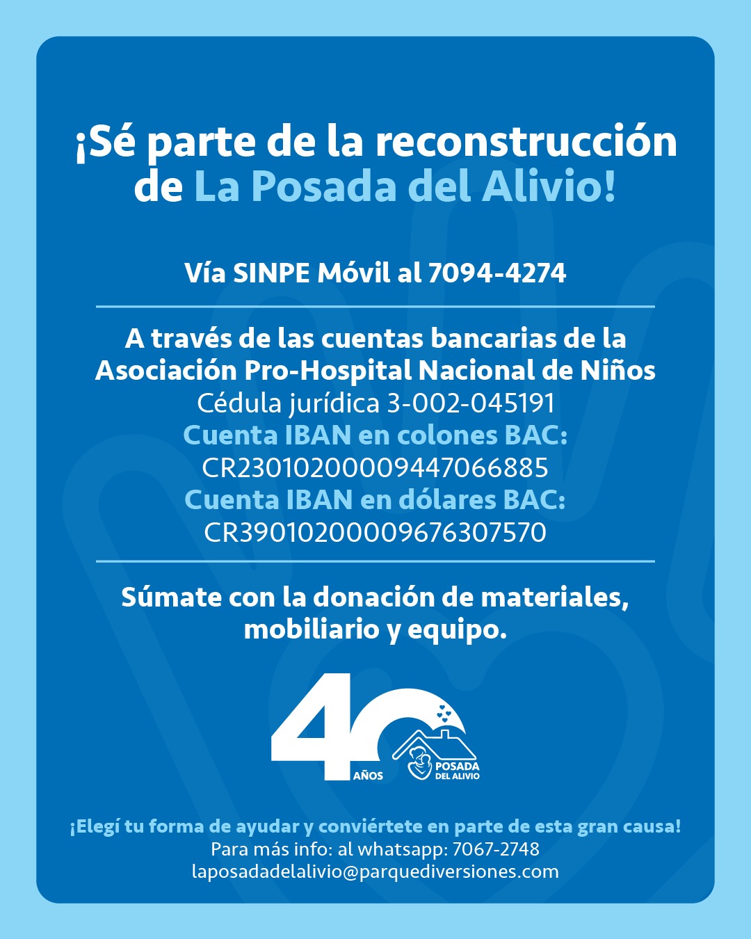 Quienes deseen apoyar la reconstrucción de La Posada del Alivio pueden realizar sus aportes mediante una transferencia SINPE al 7094-4274.