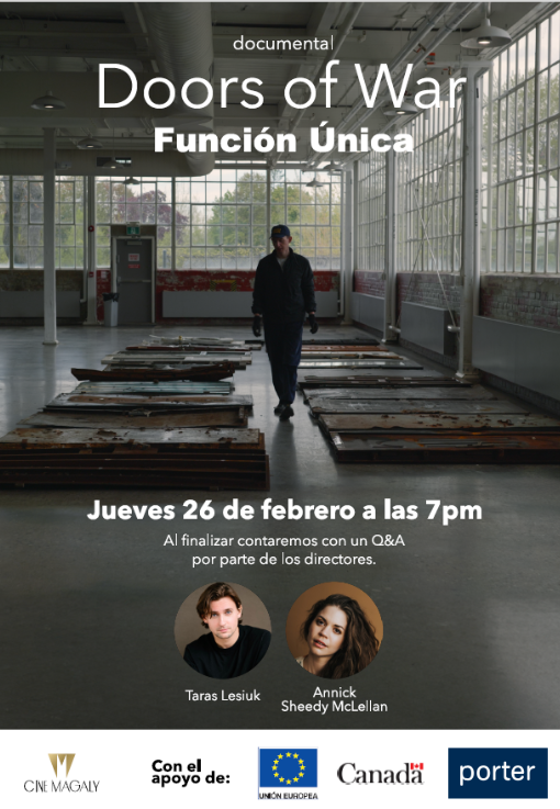Doors of War abre una puerta necesaria: la que nos permite ver y escuchar a quienes enfrentan las consecuencias más profundas de la guerra. Esta película nos recuerda que el arte puede transformar empatía en acción, y que la defensa de la dignidad humana requiere perseverancia y colaboración. Canadá es un socio sólido de Ucrania y está a su lado. En este sentido, nos honra presentar esta obra junto al Cine Magaly y la Delegación de la Unión Europea, y agradecemos especialmente a Porter Airlines por hacer posible la presencia de los directores en Costa Rica".