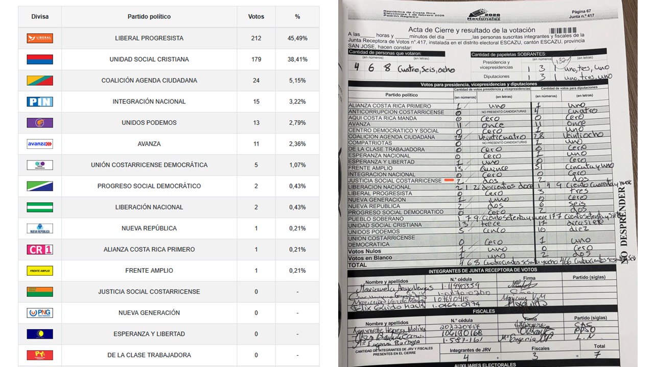Luego de la elección del 1 de febrero, algunas personas han señalado en redes sociales que, pese a haber votado por determinado partido político, los resultados preliminares publicados por el Tribunal Supremo de Elecciones (TSE) para su Junta Receptora de Votos consignan cero votos para esa agrupación.