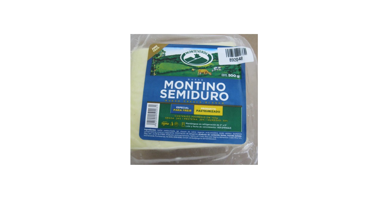 Salud identificó presencia de la bacteria en el Lote 021, con registro sanitario A-CR-16-07818, del Queso Montino Semiduro de Monteverde